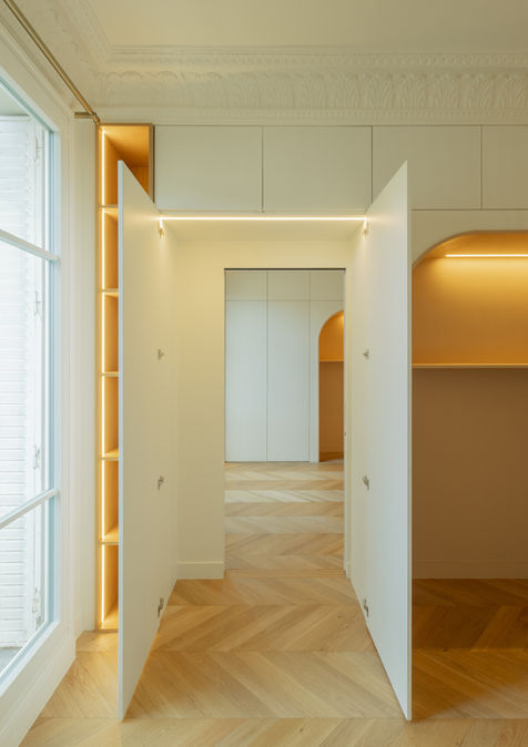 Ce projet s’inscrit dans la pratique de l’agence sur des opérations de rénovation d’appartements parisiens, au sein du bâti ancien.